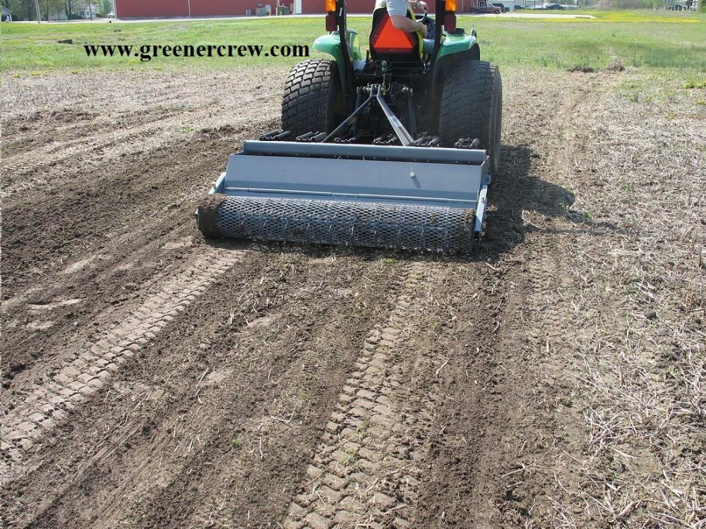 The heavy-duty roller, when either locked down or In the floating position, pulverizes large & small clots of soil that were left after scarifying. The roller also assists in leveling and shaping. The expanded metal design also provides an excellent seed bed.