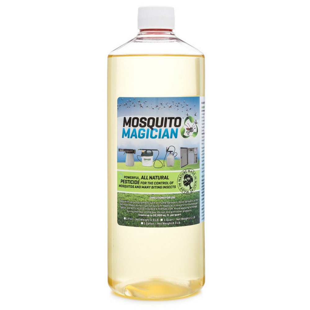 To this, we add several inert ingredients that ensure the concentrate is a true micro-emulsion that sticks well to plants and outdoor surfaces in your yard. It resists being washed off and provides up to 2 weeks of effective protection. Years of independent laboratory development and testing on actual mosquitoes makes this the best mosquito killer spray for your yard. The Mosquito Magician concentrate comes in 3 convenient sizes: gallons, quarts, or pints. The concentrate is mixed with clean water and can be applied with a battery sprayer, pump-up sprayer, hose sprayer, or our automated mosquito killer machine that works with new or existing sprinkler systems. One pint of super concentrate makes 4 gallons of potent repellent, which is enough to treat an average property 3 to 4 times making it very cost effective. This natural mosquito repellent spray lasts up to 2 weeks, not only killing targeted insects but also creating a protective dome over your yard repelling mosquitoes and other biting insects.
